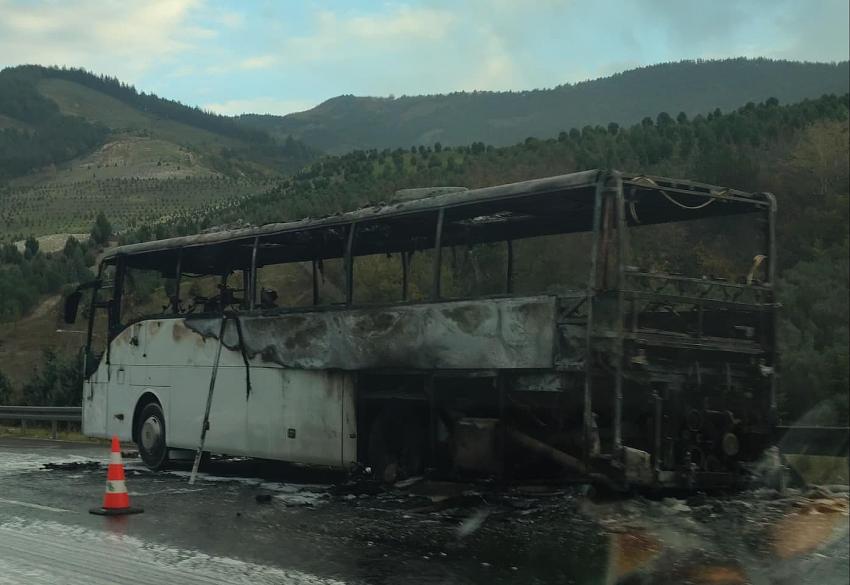 ORHANGAZİ TÜNELİ GİRİŞİNDE TUR OTOBÜSÜ ALEV ALEV YANDI