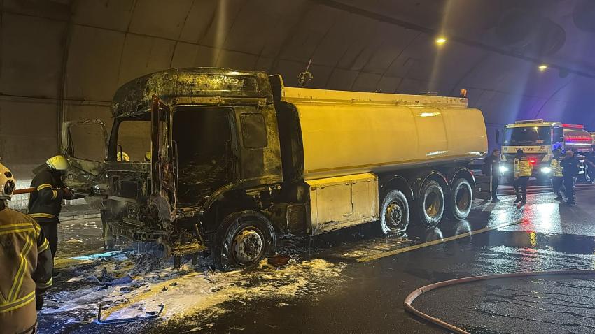 Gebze–İzmir Otoyolu’nun İstanbul istikametinde bulunan Orhangazi Tüneli’nde 24 Kasım 2025 günü saat 14.30’da seyir halinde olan su tankerinde yangın çıktı. H.E. sevk ve idaresindeki kamyonun motor bölümünden aniden duman yükselmesi üzerine sürücü aracı emniyet şeridine çekerek durumu ekiplere bildirdi. İhbar üzerine kısa sürede olay yerine gelen itfaiye ekipleri yangına müdahale ederek alevleri kontrol altına aldı. Ardından soğutma çalışmaları yapılarak yangının yeniden başlaması önlendi. Yangın nedeniyle tanker kullanılamaz hale gelirken, olayda herhangi bir can kaybı veya yaralanma yaşanmadı. Tünelde bir süre kontrollü sağlanan trafik, ekiplerin çalışmalarını tamamlamasının ardından tamamen açıldı. Olayla ilgili tahkikat başlatıldı. |